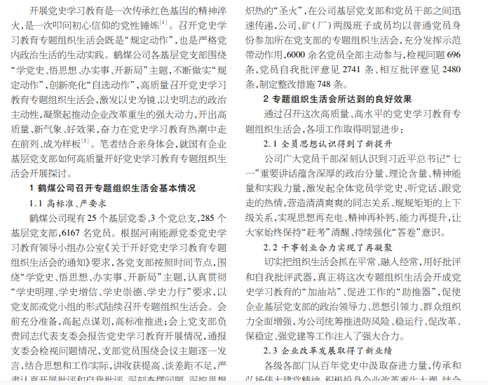 结合鹤煤公司基层党支部党史学习教育专题组织生活会召开情况,笔者从会前充分准备。