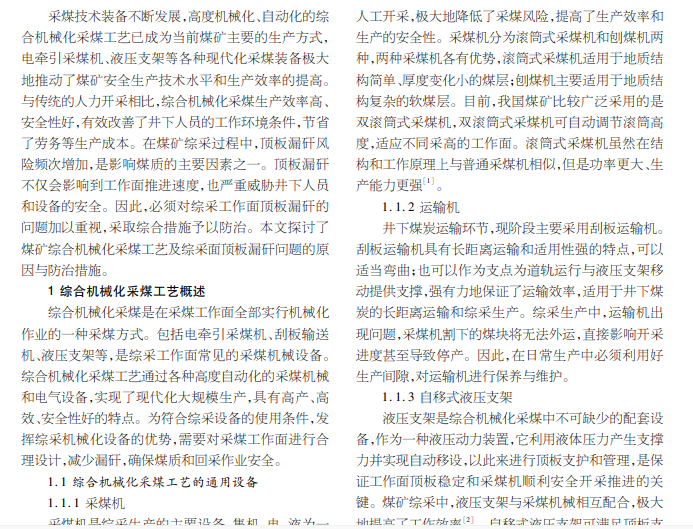 综合机械化采煤过程中 顶板漏矸的原因分析及防治措施