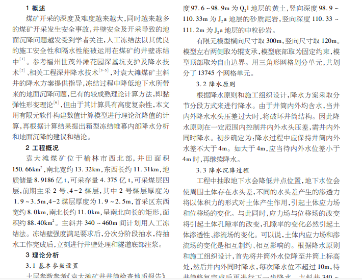 本文以袁大滩煤矿主斜井冻结降水为背景,采用人工冻结法。