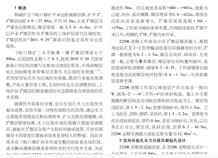 长钻孔分段水力压裂 预抽煤巷条带煤层瓦斯工程实践