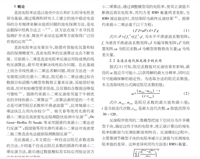 本文在前人研究的基础上,提出一种基于自适应阻尼系数选取的方法,介绍基于自适应阻尼系数的圆滑约束最 小二乘反演方法。