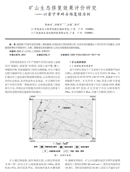 矿山生态修复效果评价研究——以普宁市碎石场复绿为例
