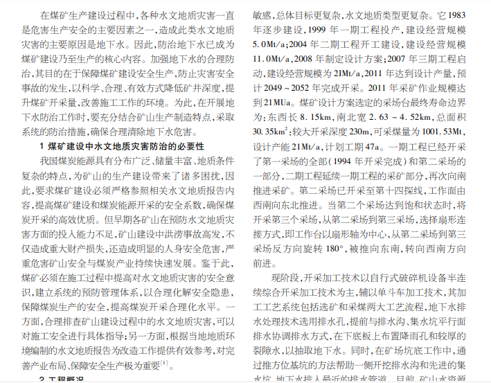煤矿建设能够促使国家工业固定资产再生产得到有力保障,但是!随着煤矿建设扩大,地下水资源以及相关地质 灾害事故频频发生,这对煤矿建设质量与安全而言是极为严重的威胁。