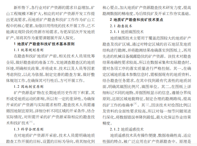 地质矿产勘查技术和找矿技术的应用,通过远程监管方式,借助先进勘测技术。