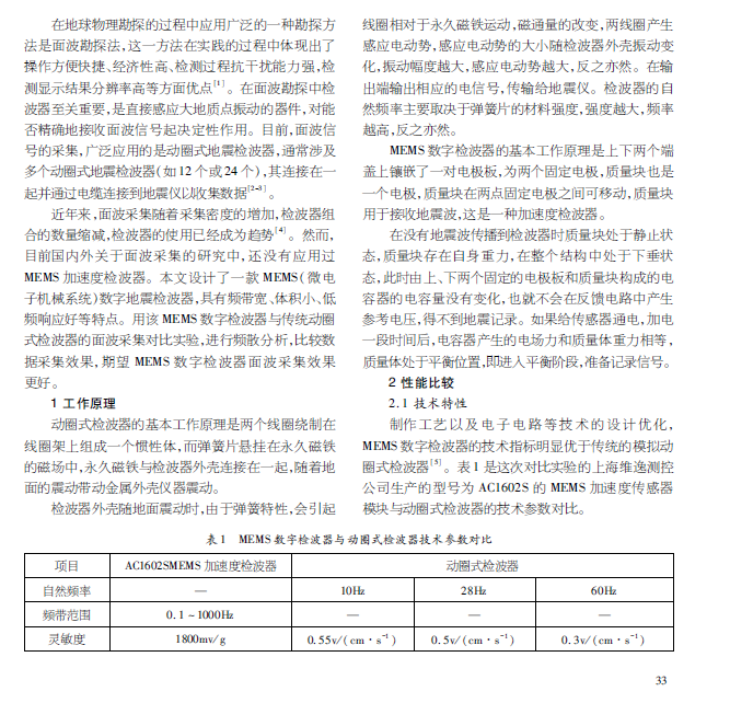 面波勘探中检波器至关重要,对能否精确地接收面波信号起决定作用。