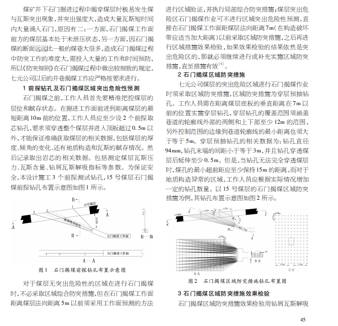 在石门揭煤过程中,设计各个环节的防突措施方案,并给出相关的技术参数及内容,以此来保证石门揭煤工作的安全进行。