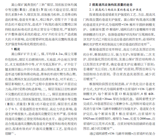 三软煤层高应力巷道 构筑高质量通风设施综合技术研究