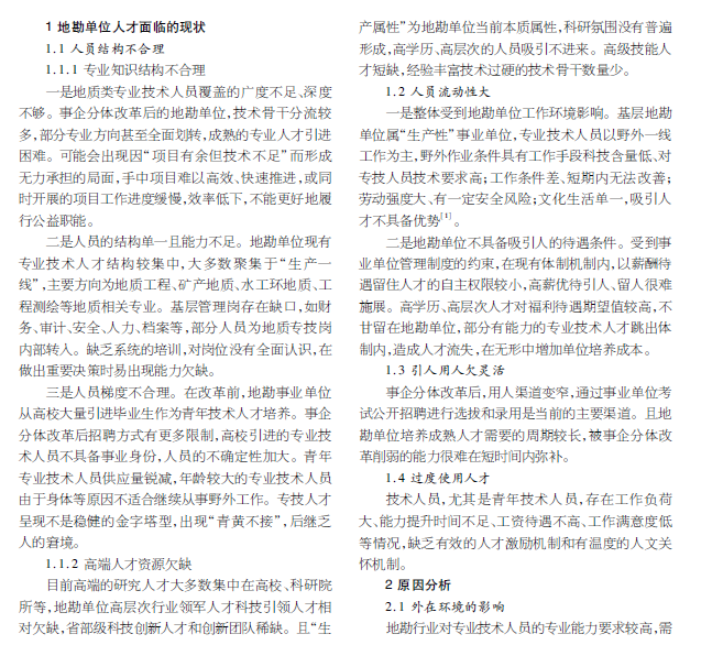 地勘事业单位事企分体改革视域下 人才队伍建设路径探索