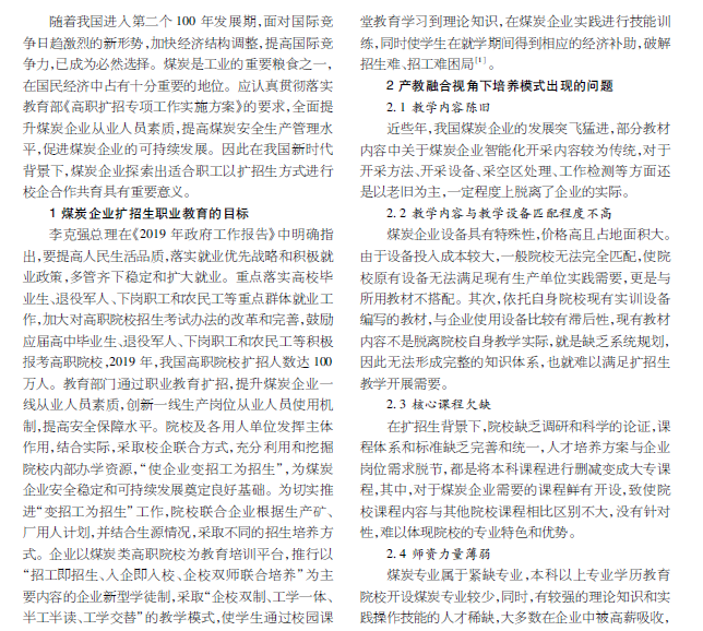 产教融合背景下校企合作共育煤炭企业职工 扩招生培养模式研究