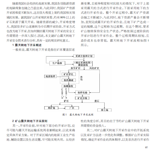 从本质上来讲,矿山露天转地下开采作业就是将露天开采技术,地下开采技术中的优势整合,形成综合性特征的开采技术。