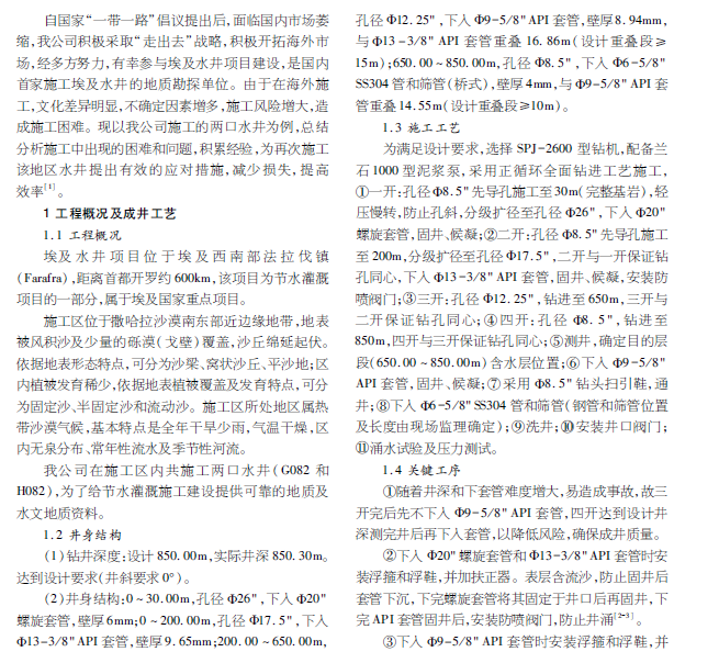埃及撒哈拉沙漠水井设计要求高,井身结构复杂,对施工区地层特点不了解,无任何施工经验。