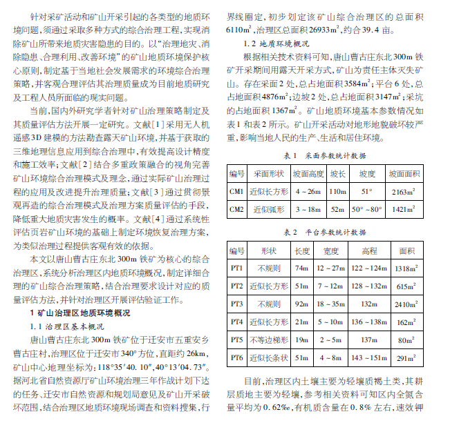 唐山曹古庄铁矿环境综合治理策略及质量评估