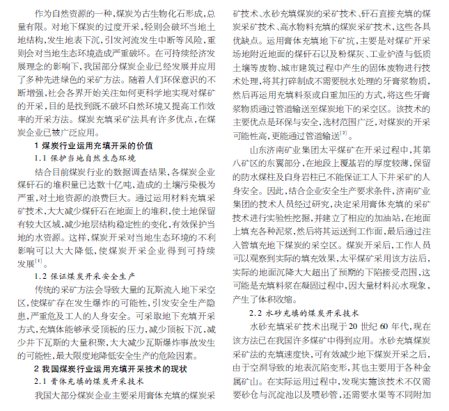 现阶段我国煤矿充填开采技术及其发展趋势