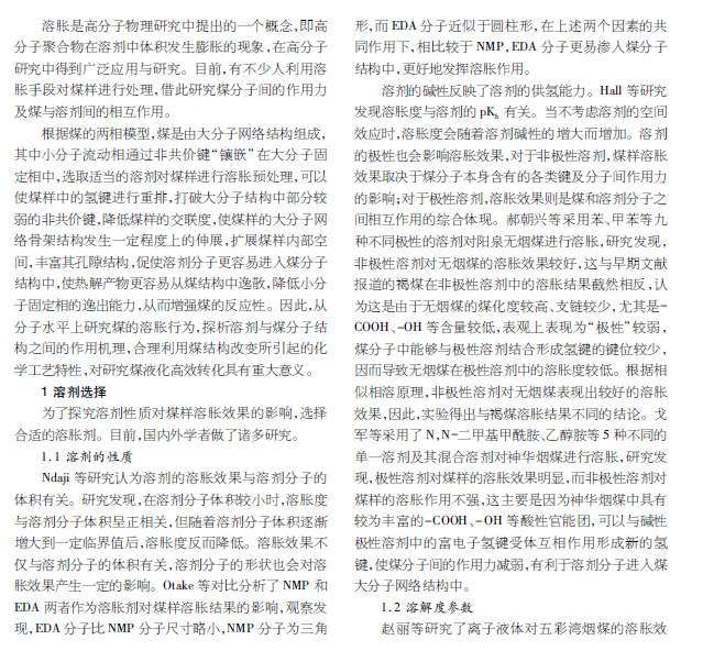 基于溶剂性质,溶胀机理,综述分析了溶剂性质,溶胀条件等对溶胀效果的影响。