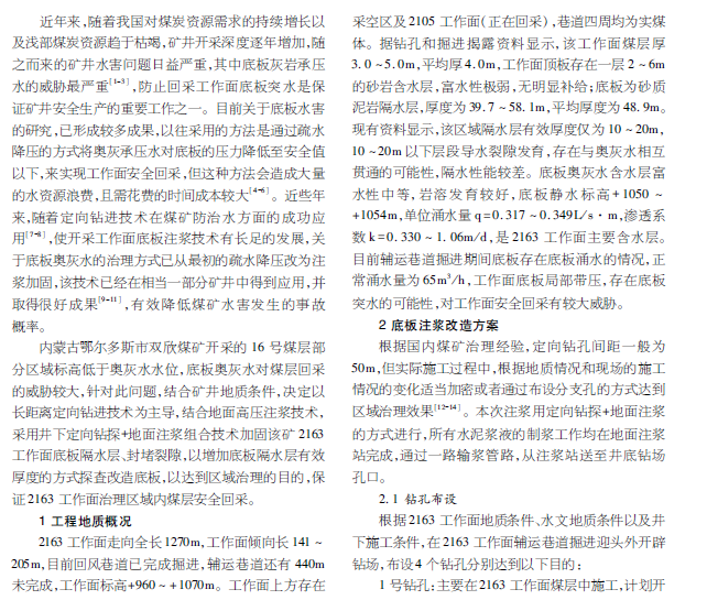 基于煤层底板长距离定向钻注浆加固技术应用