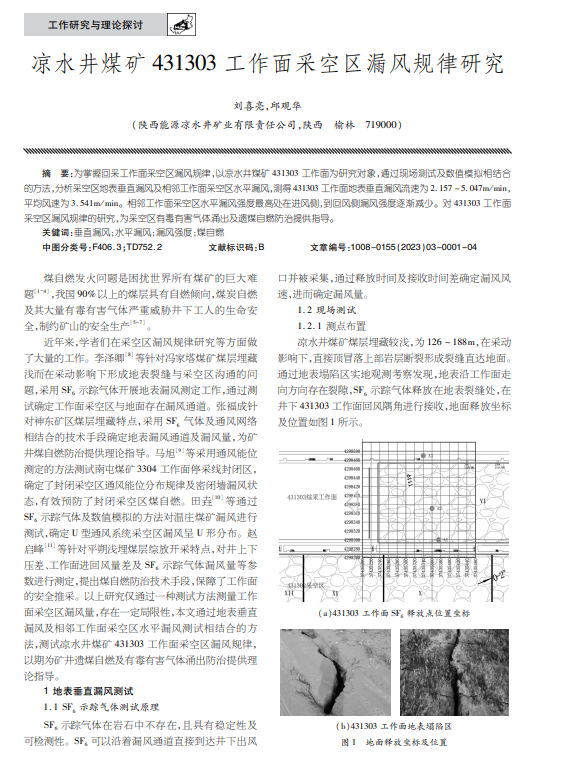 为掌握回采工作面采空区漏风规律,以凉水井煤矿431303工作面为研究对象。