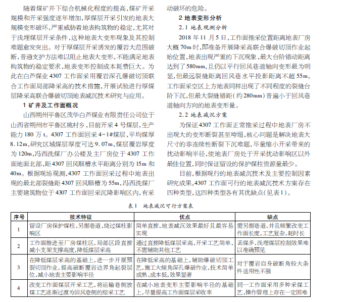 厚煤层降采高联合爆破切顶地表减沉技术研究