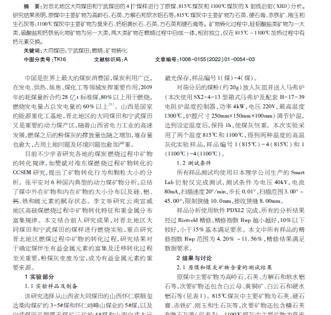晋北地区燃煤过程中矿物转化规律研究