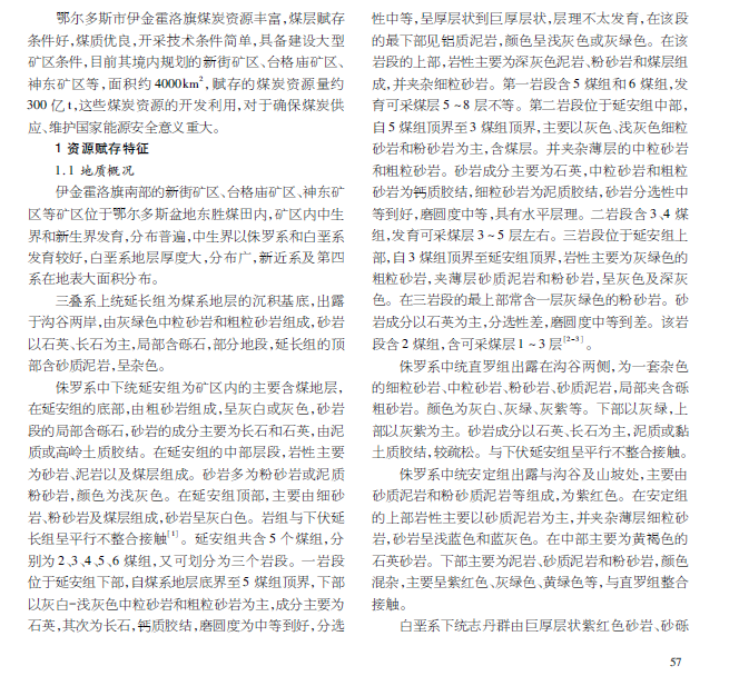 鄂尔多斯伊金霍洛旗南部 煤炭资源赋存特征及利用分析