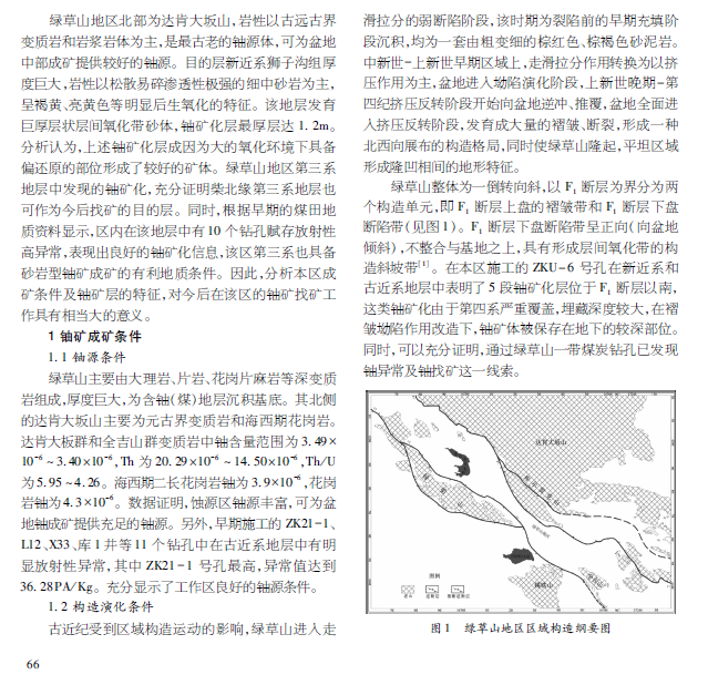 绿草山地区砂岩型铀矿成矿条件分析