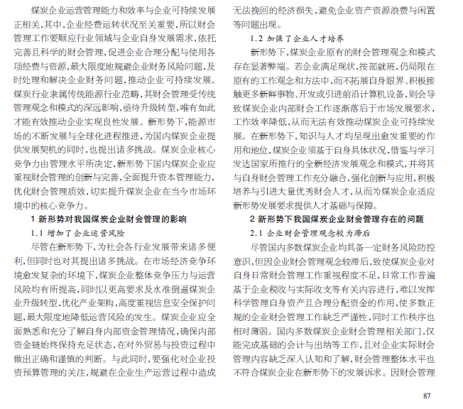 煤炭企业;财会管理