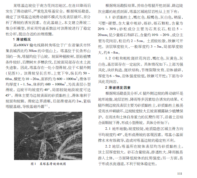 花岗岩地区 某塔基浅表层滑坡稳定性分析及治理措施