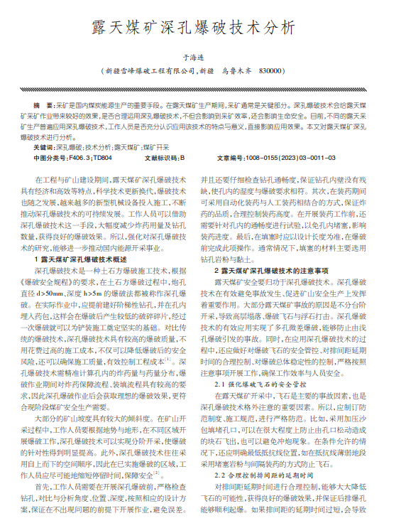 采矿是国内煤炭能源生产的重要手段。在露天煤矿生产期间,采矿通常是关键部分。