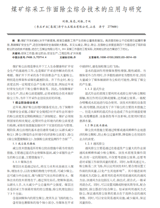 煤矿综采工作面除尘综合技术的应用与研究