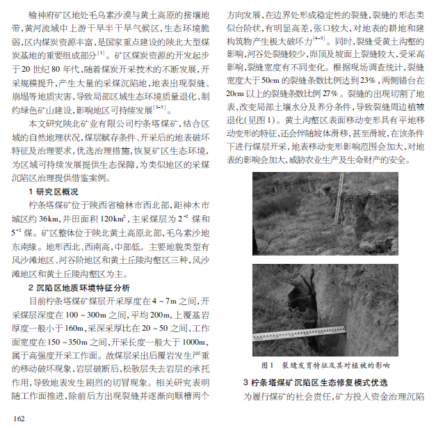 榆神府矿区煤炭资源丰富,是黄河流域生态保护和高质量发展的核心地带,开采条件优越,但生态环境脆弱,煤炭开采后形成的地表沉陷严重影响土地及植被等。