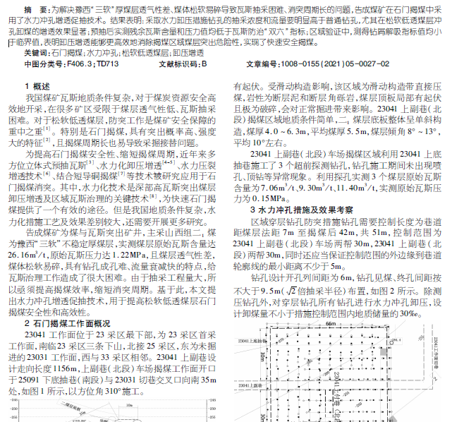 水力冲孔增透促抽技术 在松软低透煤层石门揭煤中的应用研究
