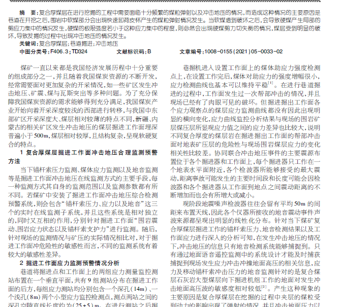 复合厚煤层巷道掘进冲击地压机制 及监测预警技术