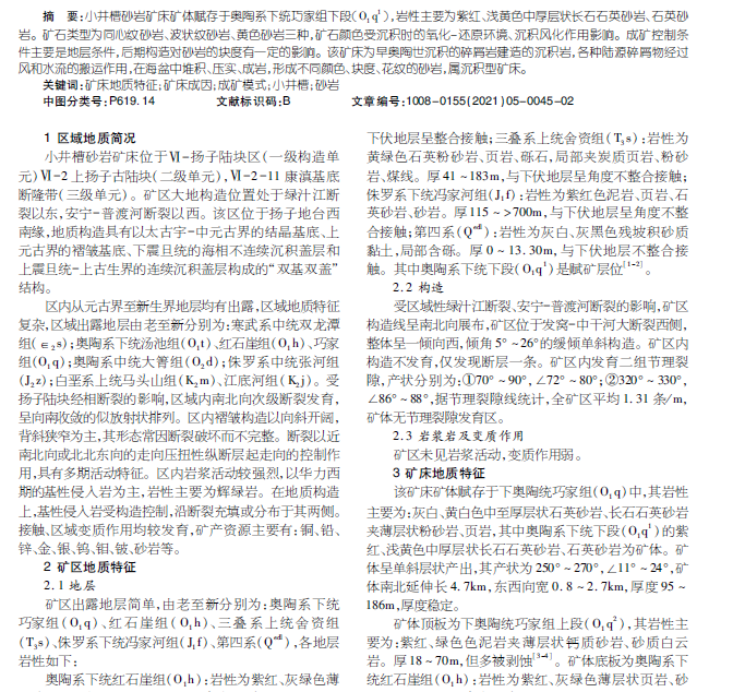 小井槽装饰材料用砂岩矿成因及成矿模式浅析