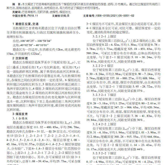 东胜煤田巴音青格利勘查区 沉积环境及煤层分析