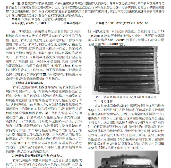 现代化采煤机中减速器的失效研究及措施
