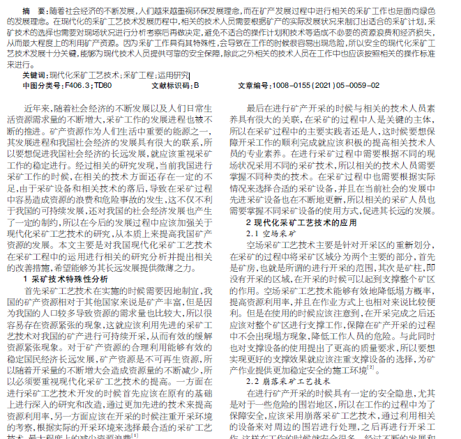 现代化采矿工艺技术在采矿工程中的运用研究