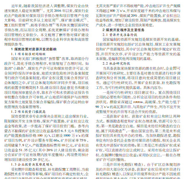 随着煤炭行业由快速发展期转入稳定发展期,煤炭政策形势的变化较大,这对煤矿手续办理和项目管理提出了新要求。