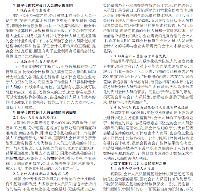 在这种背景下,会计人员如何发展是当前亟待解决的重要问题,所以现阶段会计人员急需找到自身发展所面临的现实困难,紧跟时代发展的潮流。
