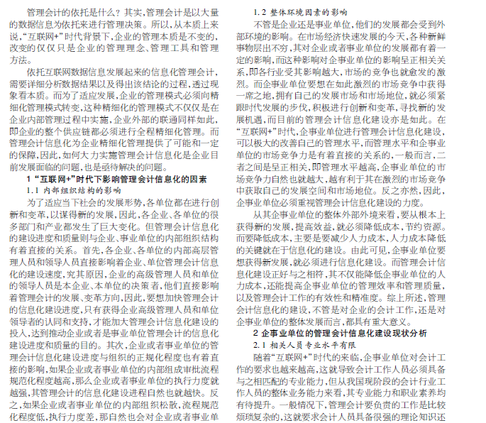 本文将对互联网时代下的管理会计信息化进行深度探索分析,根据问题提出策略,为管理会计的规范化发展抛砖引玉。