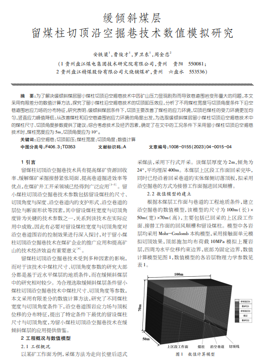 缓倾斜煤层留煤柱切顶沿空掘巷技术数值模拟研究