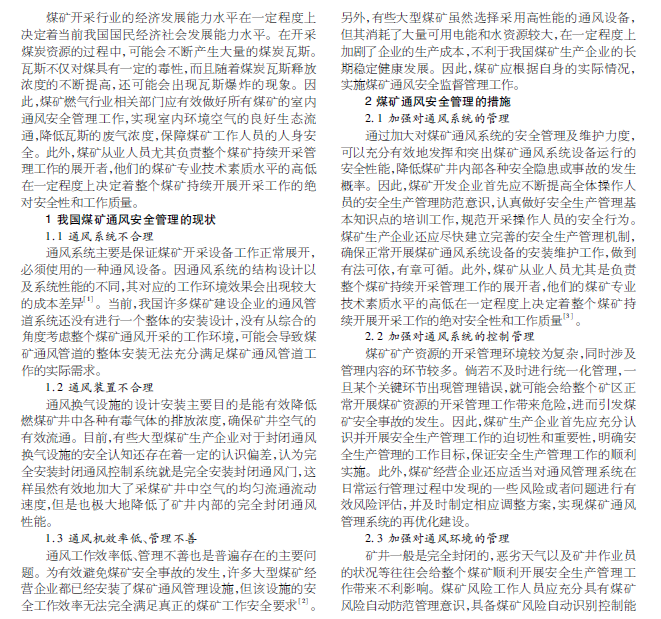 煤矿通风安全管理及通风事故的防范措施分析