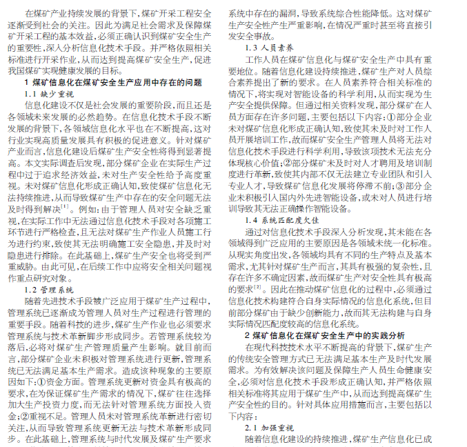 煤矿安全生产是煤矿开采作业的重要基础,能够对工程基本效益与生产人员生命财产安全产生直接影响。