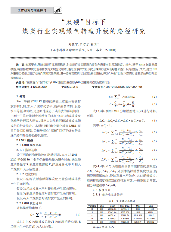 “双碳”目标下煤炭行业实现绿色转型升级的路径研究