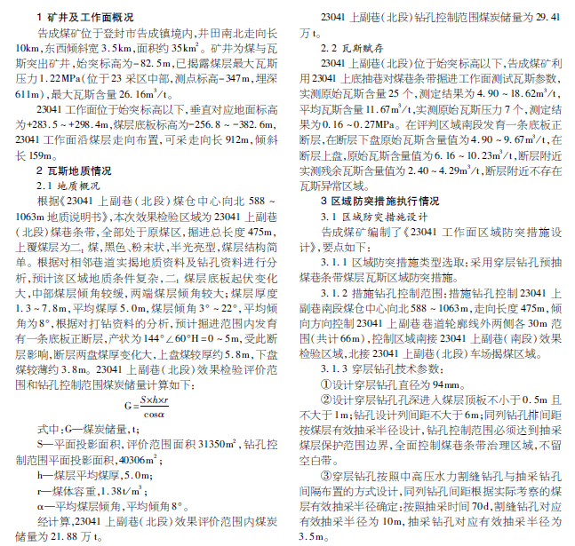告成煤矿23041上副巷(北段) 掘进工作面区域防突措施应用