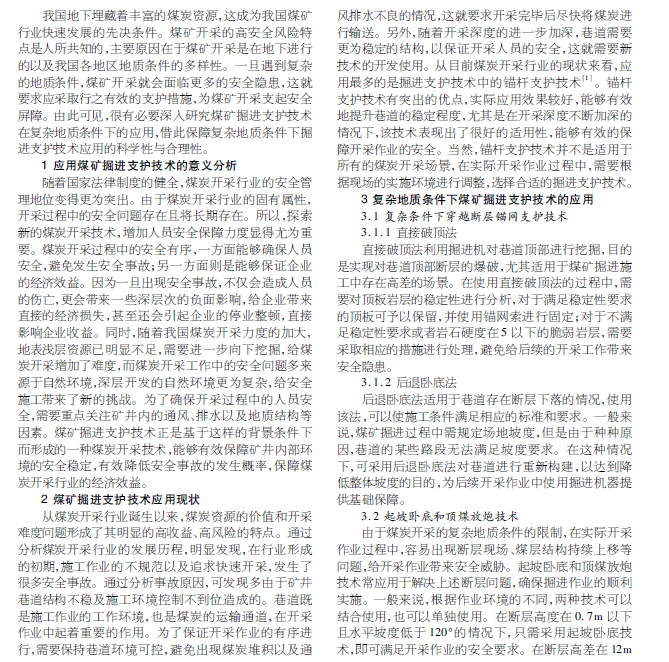 基于复杂地质条件下的煤矿掘进支护技术应用