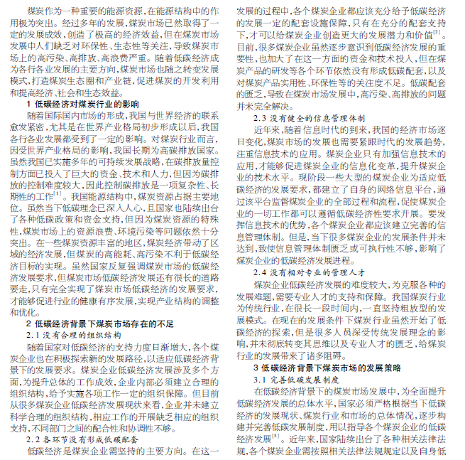 近年来,随着国家日渐重视低碳经济概念,很多行业都在此背景下转变了其发展方向,尤其是煤炭行业这类传统产业。