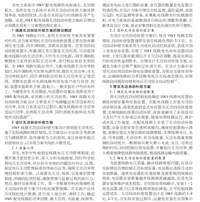 介绍无功自动补偿装置设计与安装,总结制定无功自动补偿方案与落实优化方案的可行经验。