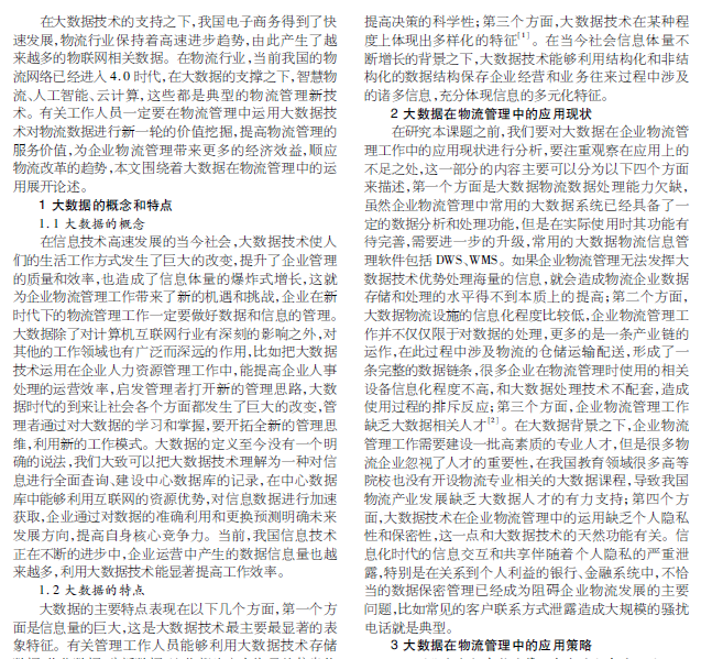 !随着信息技术的发展,人类社会已经进入大数据时代,有很多物流企业面临着全新的发展环境和挑战,需要做出自我调整,适应环境。