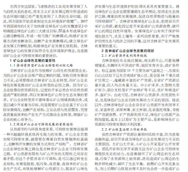 吉林省矿山企业绿色发展的现状及对策研究