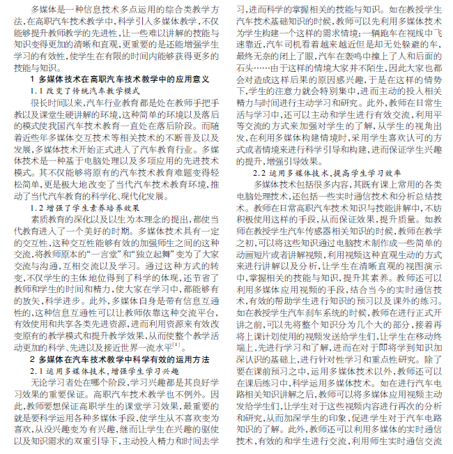 运用多媒体技术提高高职汽车技术教学的有效性