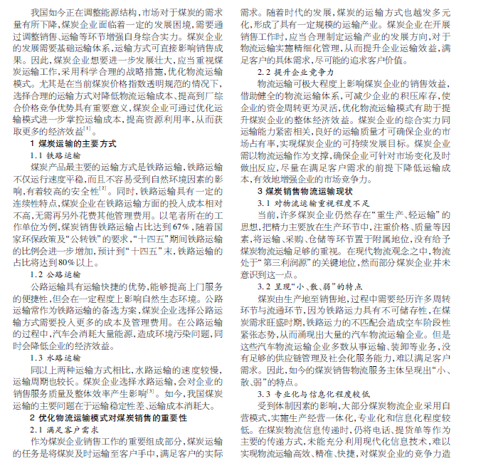 运输方式对煤炭销售的影响因素探析